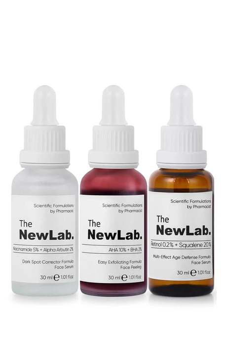 Този комплект включва ниацинамид 5% + алфа арбутин 2% серум, специално разработен за изравняване на тена на кожата и грижа против петна, AHA и BHA пилинг серум за лице, който обновява текстурата на кожата, и ретинол 0,2% + сквален 20% серум за лице, който е ефективен срещу признаците на стареене. Комбинацията от ниацинамид и алфа арбутин помага за регулиране на тена на кожата, докато серумът с AHA и BHA премахва мъртвите клетки, осигурявайки по-гладка и жизнена кожа. Серумът с ретинол се бори с бръчките и изсветлява и стяга тена на кожата. Този комплект предлага основната грижа, от която се нуждаете, за да направите кожата си по-млада и сияйна.