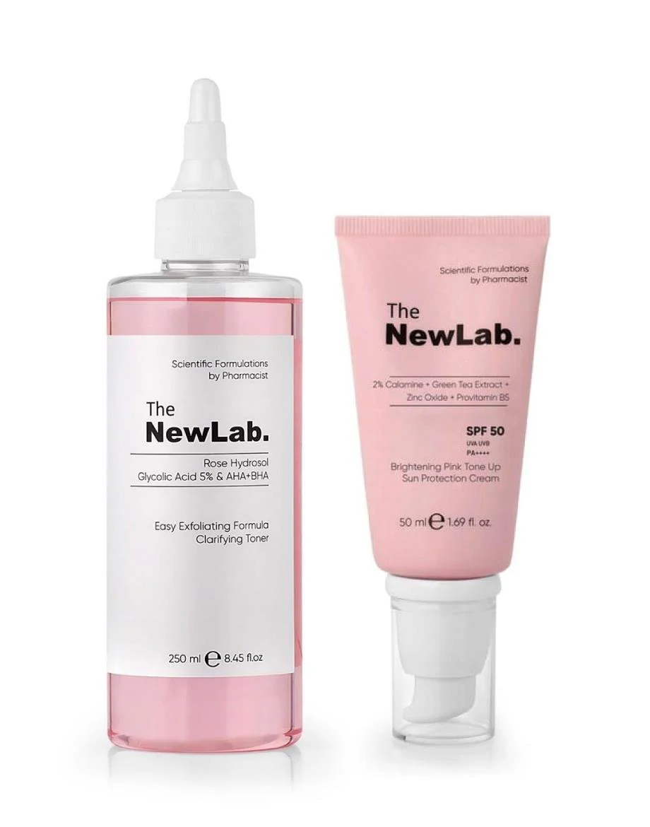 Този комплект за грижа за кожата е перфектно съчетание от ефикасност и защита. Включва тонер с розова вода и 5% гликолова киселина, който дълбоко почиства кожата, премахвайки мъртвите клетки, мазнини и грим, докато нежно ексфолира и свива порите. Формулата е обогатена с AHA и BHA за регулиране на себума и стимулиране на обновяване на кожата. Към тези продукти, комплектът включва и слънцезащитен крем с SPF 50+, който предпазва от UVA и UVB лъчи, обогатен с 2% каламин и екстракт от зелен чай. Този крем не само защитава, но и изсветлява кожата, като предотвратява появата на нови пигментни петна. Идеален за всякакъв тип кожа, включително и за чувствителна, този комплект осигурява цялостна грижа, поддържайки кожата здрава, защитена и сияйна.