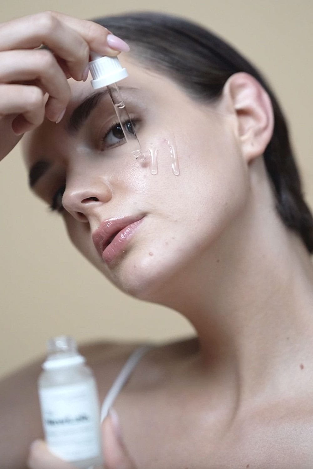 Нанесете достатъчно количество серум върху почистена кожа, като нежно масажирате.